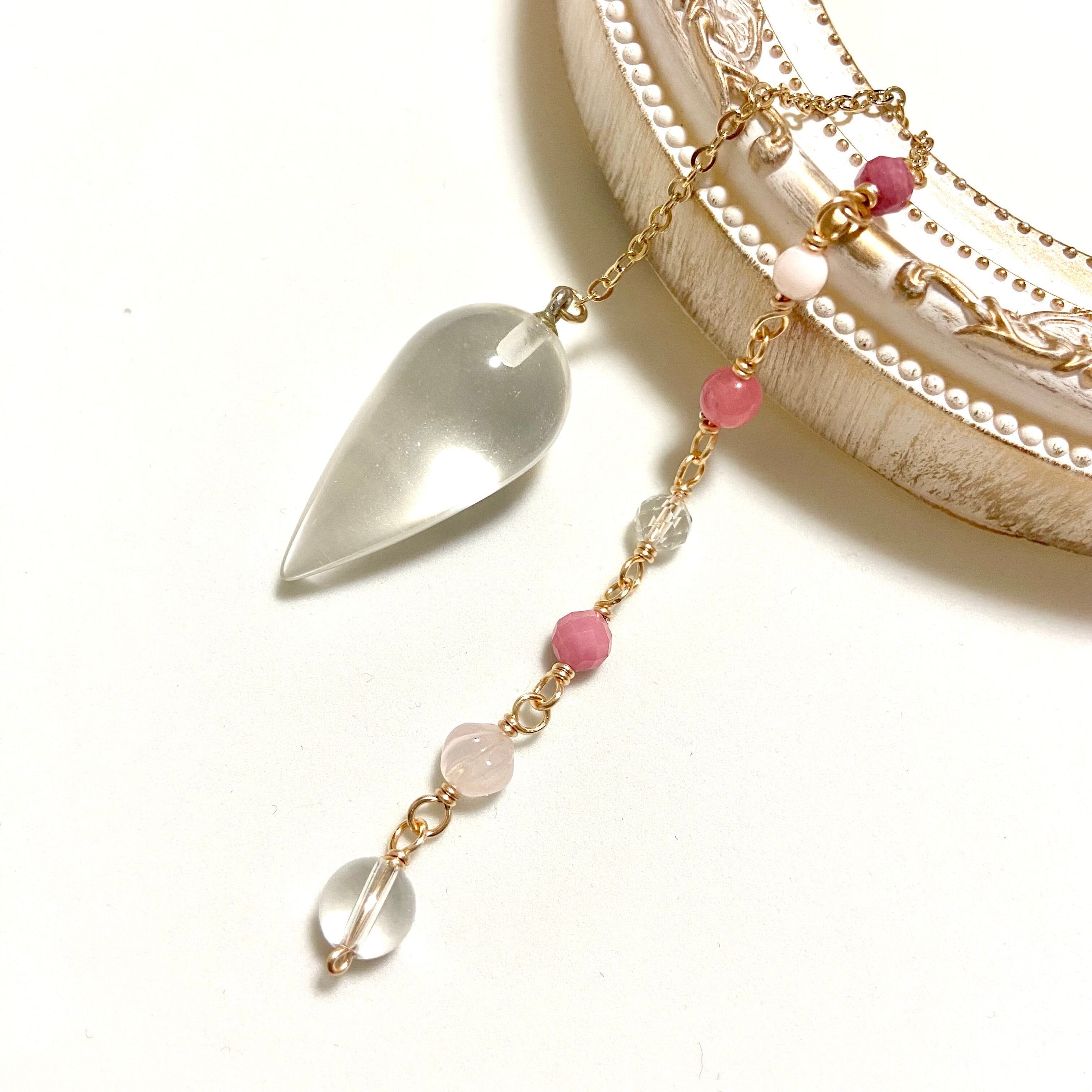 石:水晶、ローズクォーツ、ロードナイト、水晶、ロードクロサイト(インカローズ)、クイーンコンクシェル、シリシャシスト