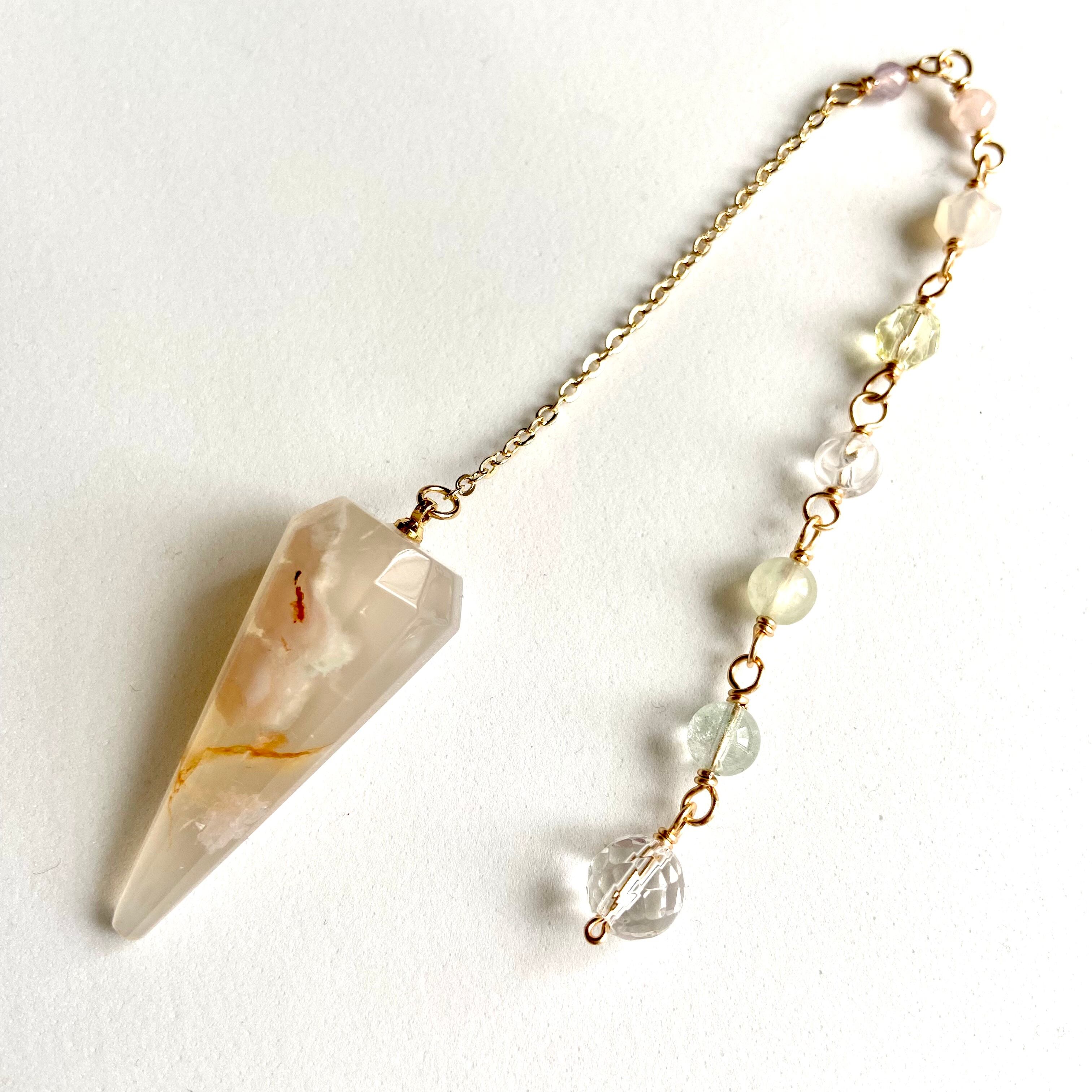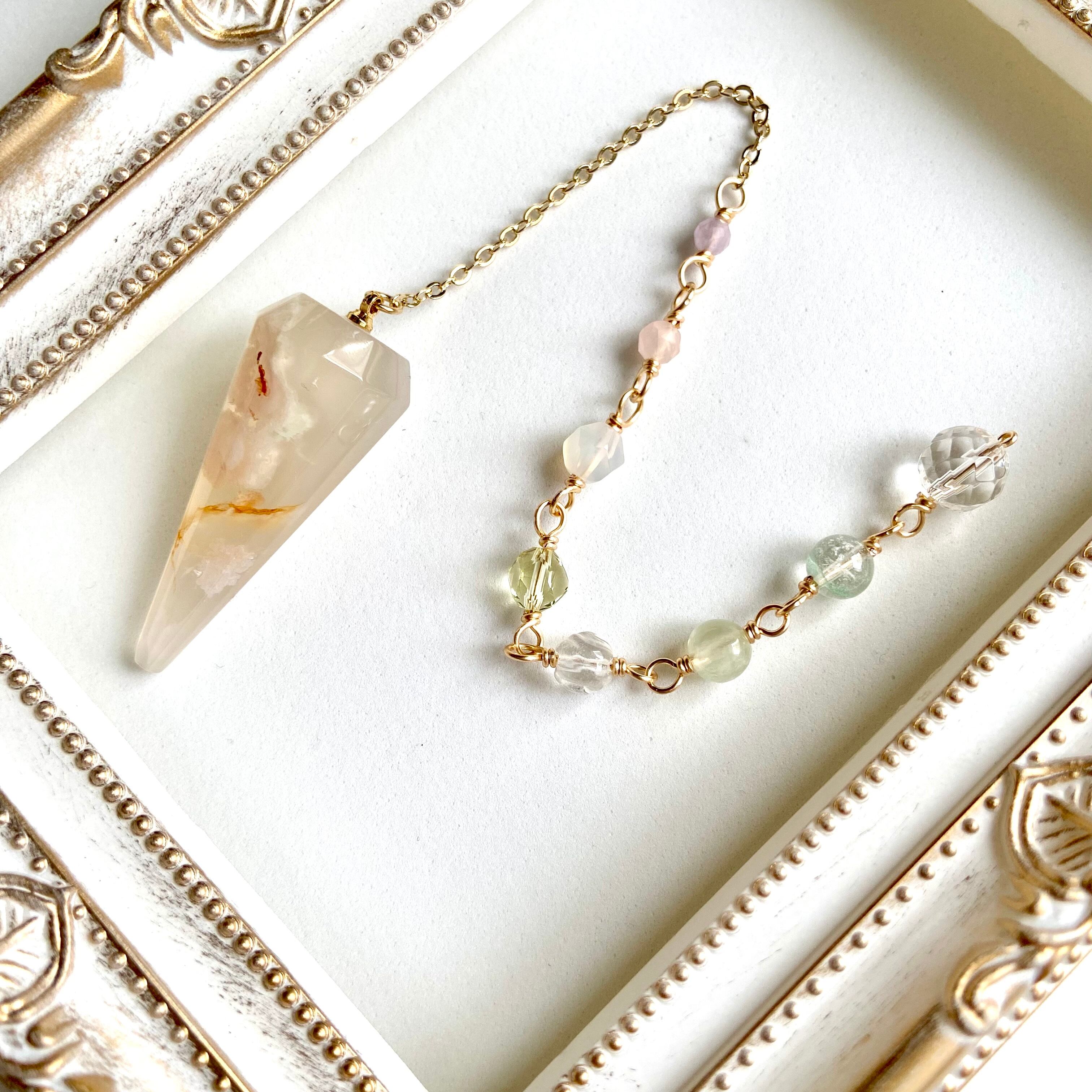きくたが直感的に石を選び、ダウジングで確認しながら組み合わせたペンデュラムです。